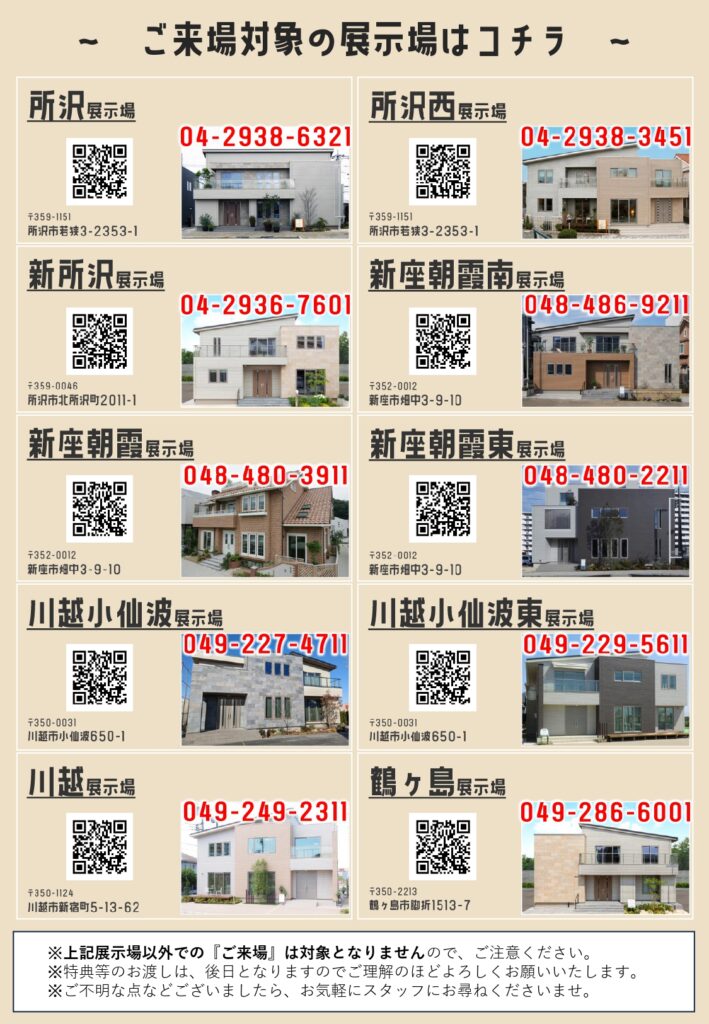 ※指定展示場以外の「ご来場」は対象となりませんのでご注意ください。対象展示場は画像資料をご確認ください。