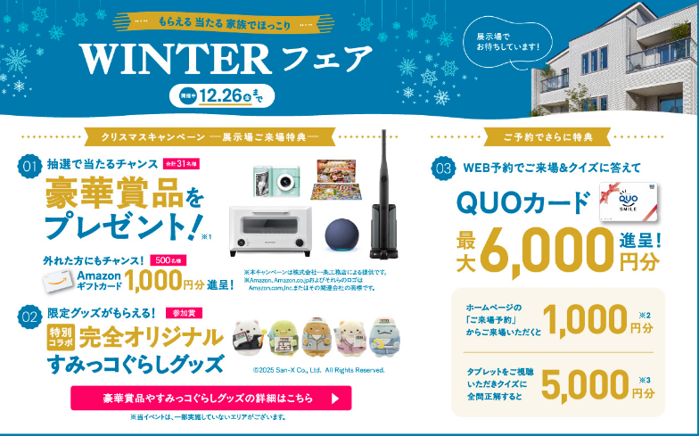 ※2:ホームページより来場予約を初めてご利用の方に限らせていただきます。QUOカードはご来場から3週間以内に発送いたします。