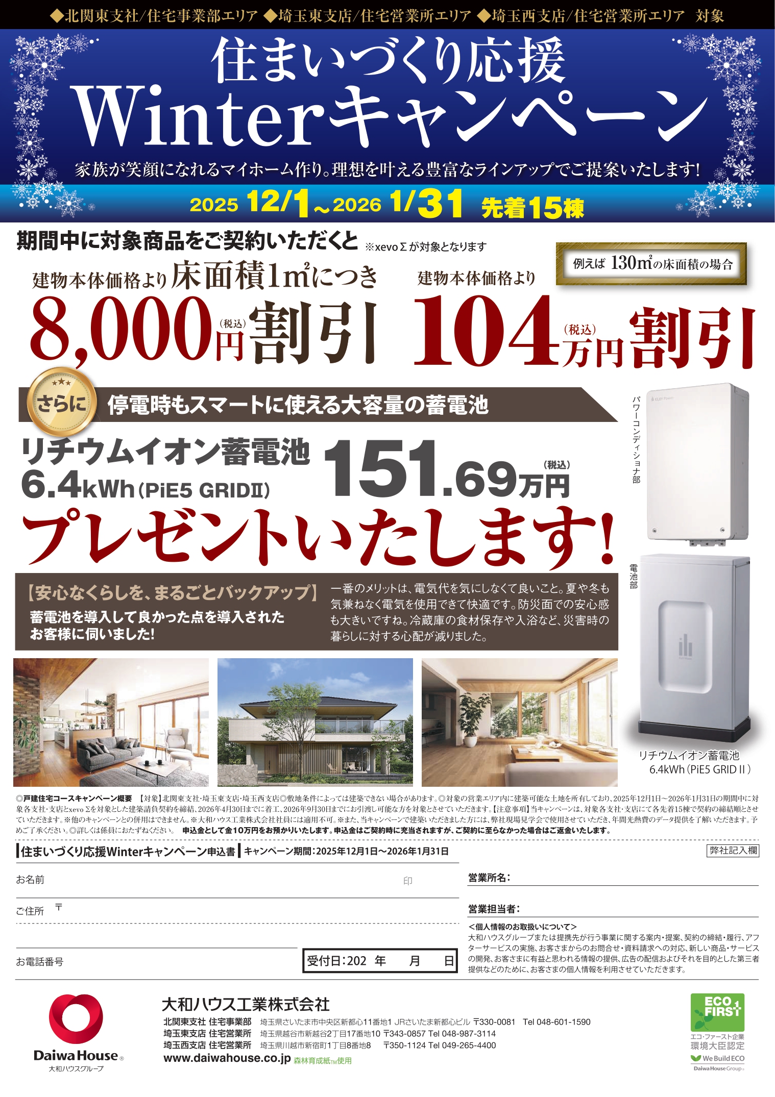 期間中に対象商品をご契約いただくと建物本体価格より床面積1㎡につき