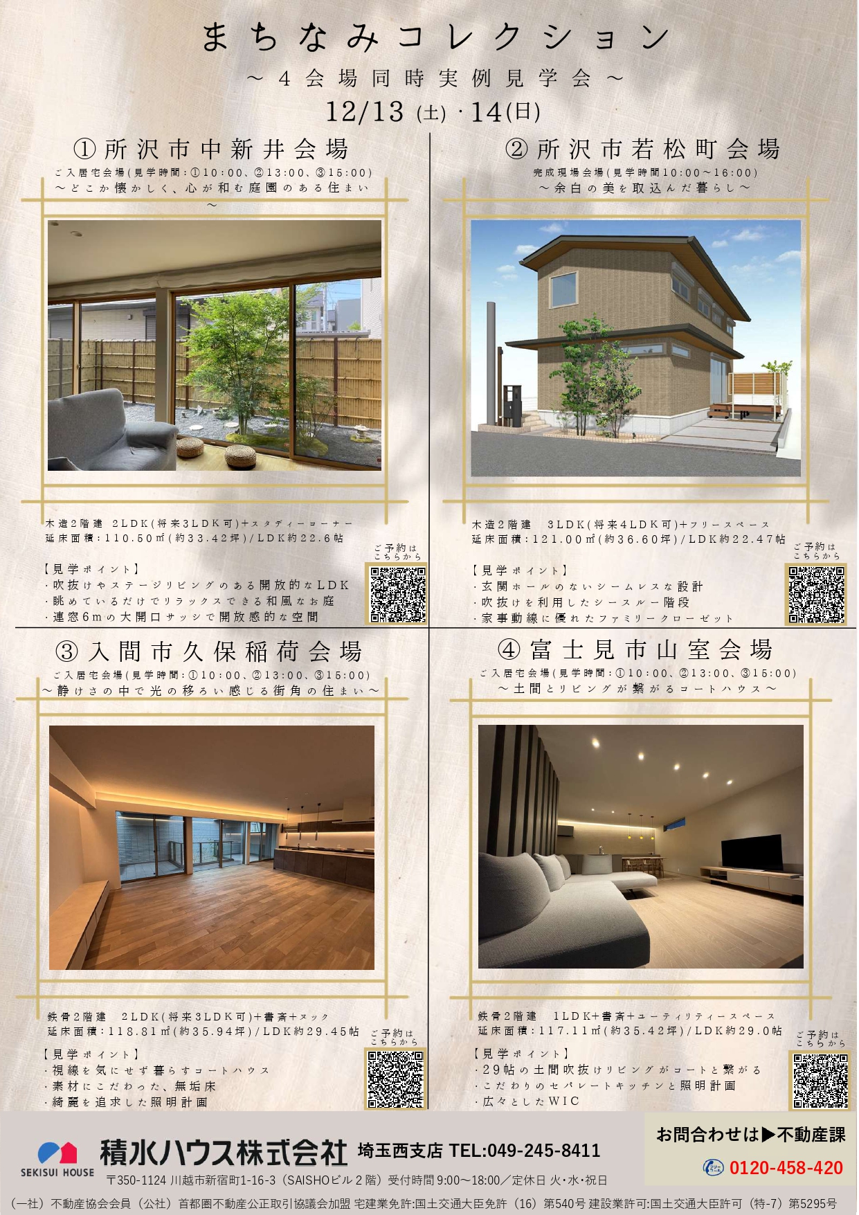 エスコート会場3会場・完成現場1会場の見学会を12が鵜t13・14日(土・日)の2日間開催致します。